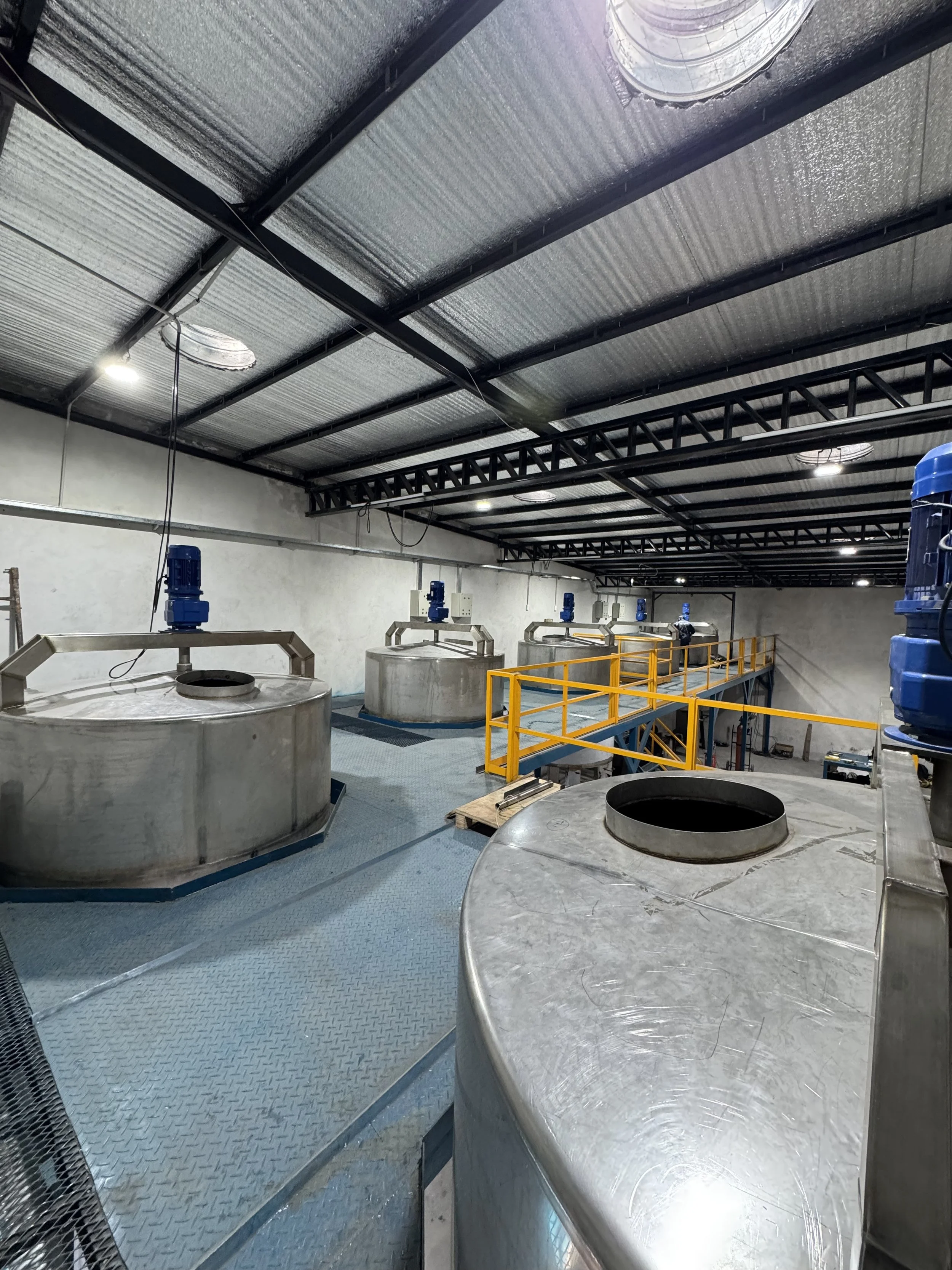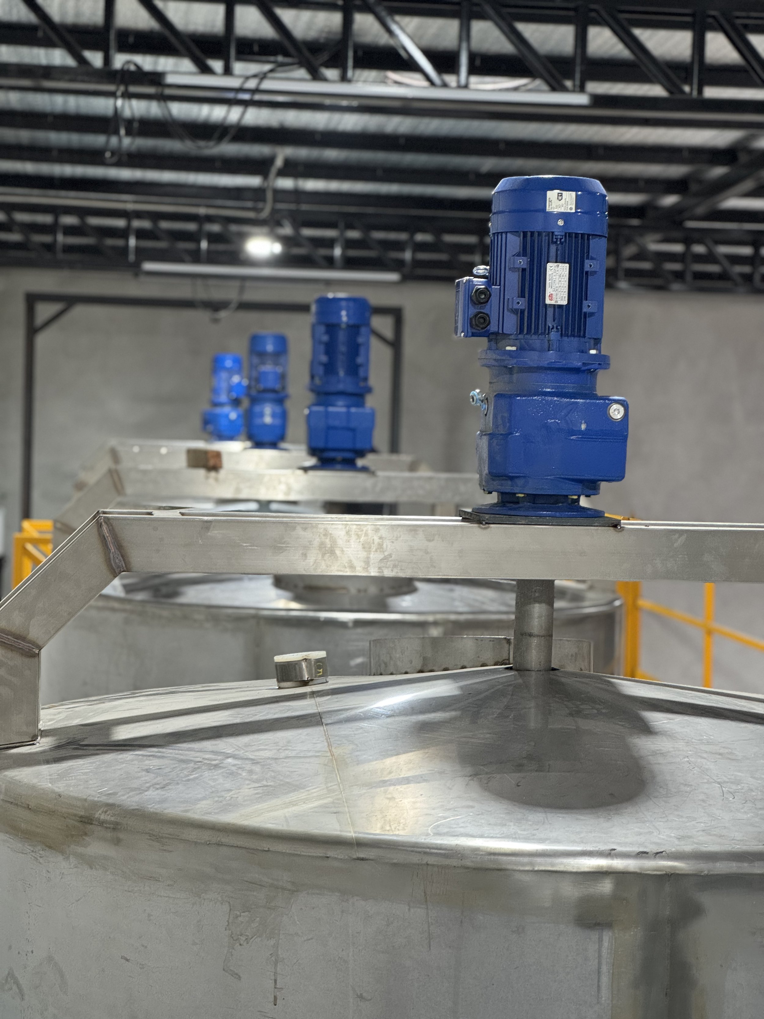 Construcción y montaje de 6 tanques de 8.000 L con agitadores y motoreductores. Plataforma de hierro para operatividad.